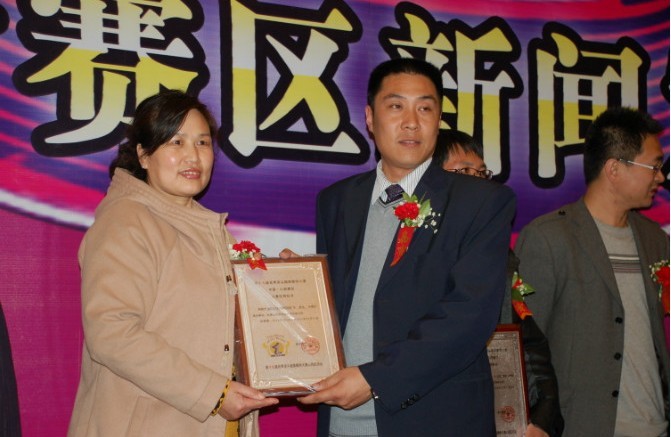 大赛执委主任、山西晋宇文化传播公司董事长张建将为晋中分赛区负责人姚庆花女士颁发授权书
