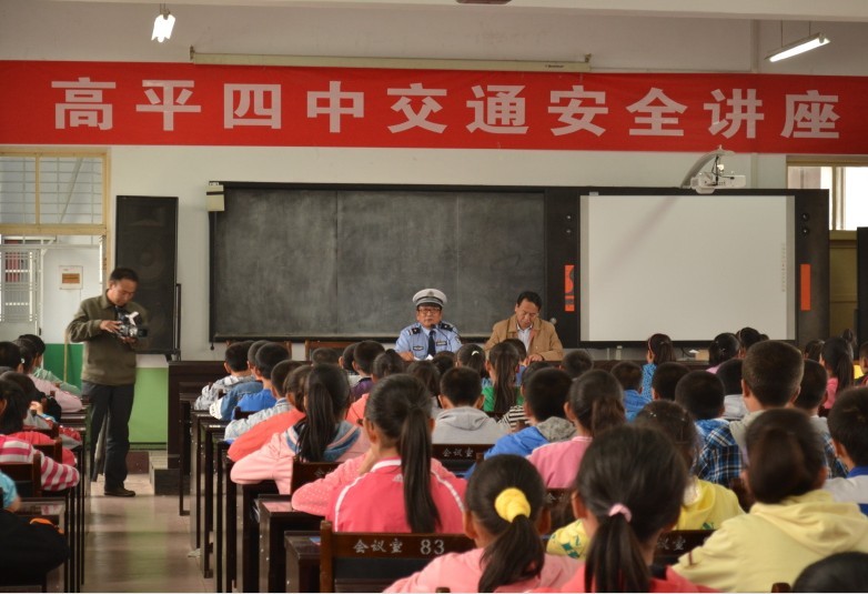 为确保中小学生交通安全,高平市交警大队开展了交通安全宣传进学校活动,进一步提高中小学生交通安全知识和自我防护意识,告诫学生高高兴兴上学、平平安安回家。图为该大队宣传民警正在向高平四中学生讲解交通安全知识。 责任编辑: